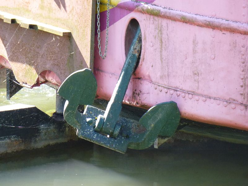 Bon, c'est un premier pas... mais ça ne fait quand même pas beaucoup avancer... j'essaye donc de trouver d'autres marques, notamment sur les ancres, puisqu'il n'est pas rare, sur d'autres, d'y trouver devise Solvay et matricule tracés d'un cordon de soudure. Mais à l'avant :
