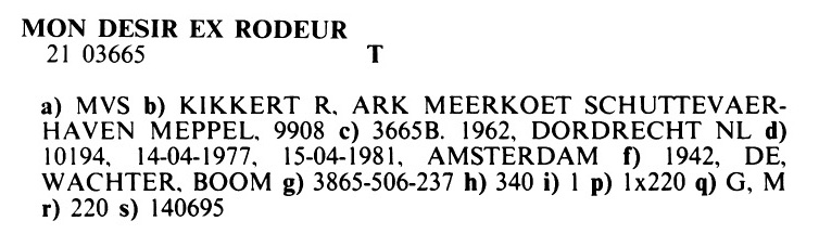 c'est Mirabelle ex Juliana ex Mon Desir ex Rodeur ex Bert ex Clementine