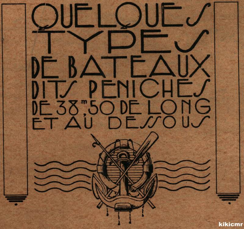 C'est un très grand carnet à spirales (environ 45 x 34cm) qui contient 25 planches représentant chacune un type de bateau, de la flûte d'Ourcq au TAMSA en passant par le marocain. Pour chacun, il y a une élévation de tribord, une vue en plan, une vue de l'avant et une autre de l'arrière, ainsi qu'un dessin stylisé du bateau en navigation et les principales caractéristiques.