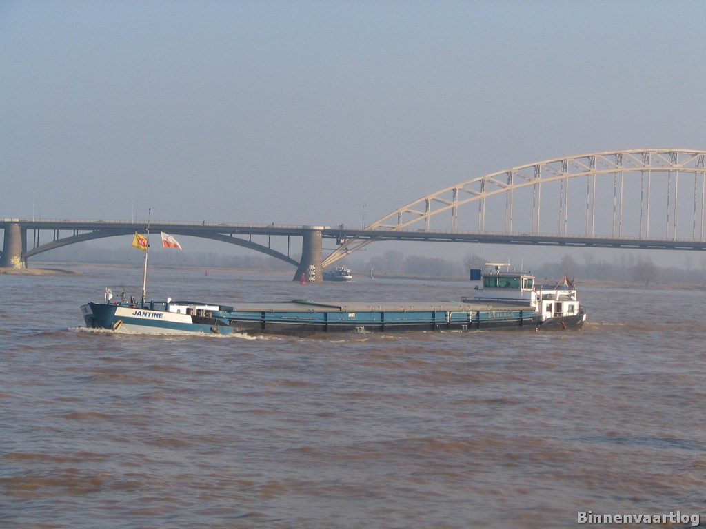 Jantine , 72,80 x 8,20 x 2,60 , 1099 ton , Bouwjaar 1962 , Werf Lambrechts in Boom ( Belgie ) , 600 pk GM en 320 pk DAF boegschroef , ex Julien , ex Mecheline , ex Mutatie , ex Mededinger , eigenaar Vof Sterrenburg Scheepvaart in Hardinxveld-Giessendam , ENI 02313072