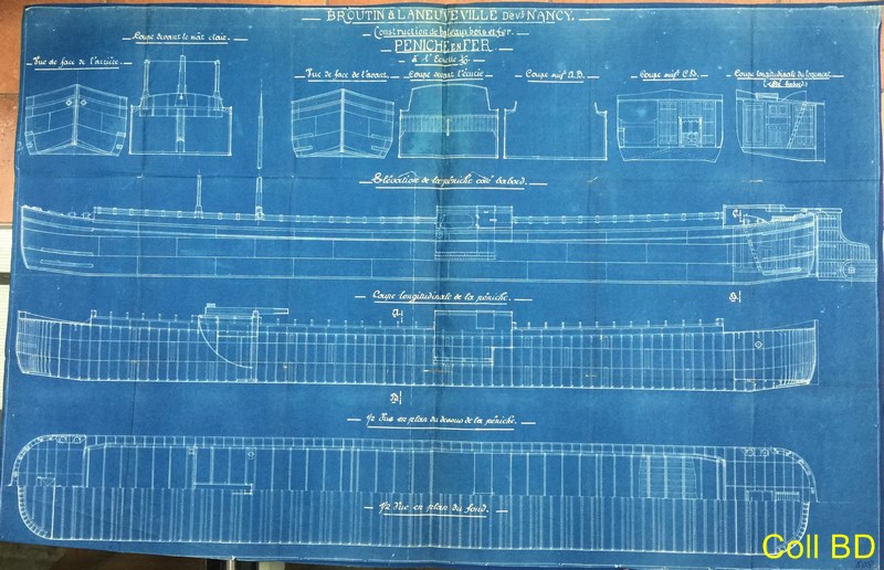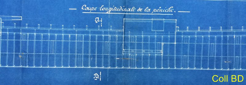Par contre, aucune réduction n'intéresse l'échantillonnage de la coque ; tous les assemblages sont réalisés par rivetage. Ces péniches simplifiées ont été construites par des chantiers artisanaux.