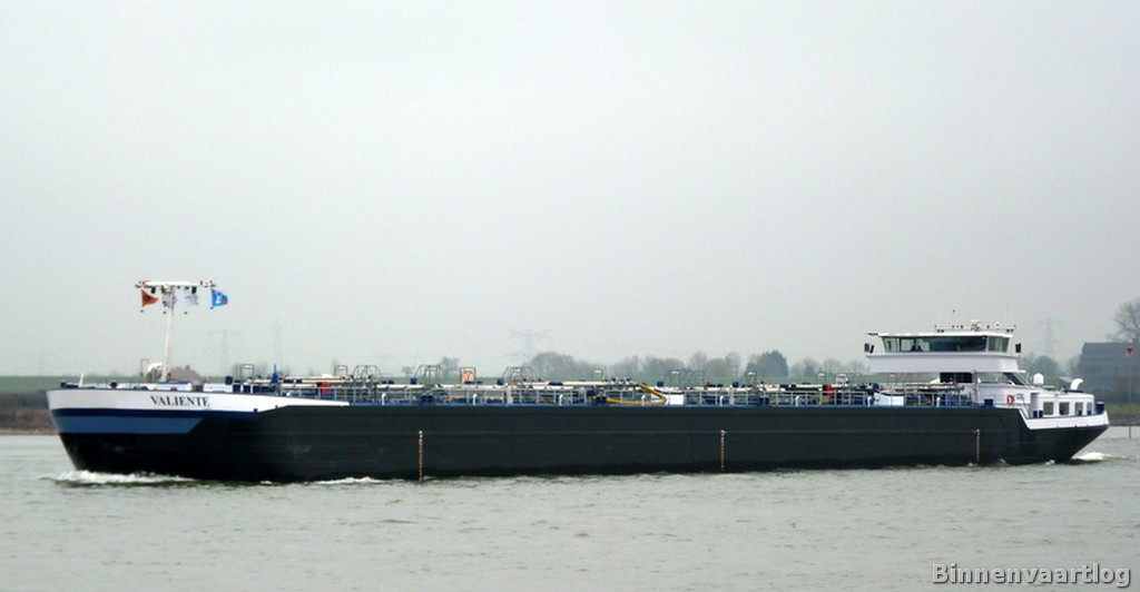 Valiente , 110,00 x 11,45 x 3,47 , 2907 ton , Bouwjaar 2011 , Werf Kladova Shipyard in Kladova ( Serbia ) en TeamCo Shipyard in Heusden ( Nederland ) , 1800 pk ABC en 575 pk Scania - Veth-Jet boegschroef , eigenaar Schipper Chemicalien Transport in Haren Ems , ENI 02333982