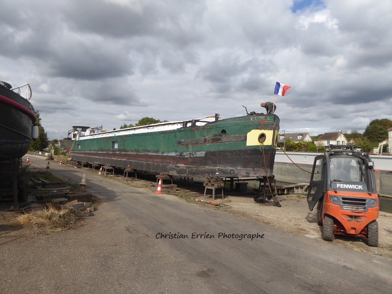 Voilà les travaux sont terminés , le bateau a retrouvé son élément.....; il a aussi changé de couleur, il y a beaucoup plus de noir comme sur un bateau de commerce.