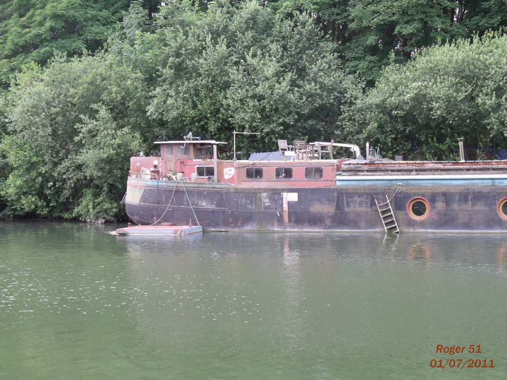 si je dit pas de bêtise le bateau est stationne en rive droite en aval du pont de Bezon maintenant