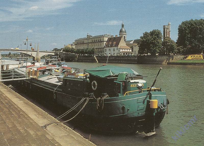 La Carte de Chalon/S et celle de Fleurey sur Ouche montrent le même bateau vu de l'avant et de l'arrière , pour ce bateau j'ai noté un Jos Boël Tamise de 1950.