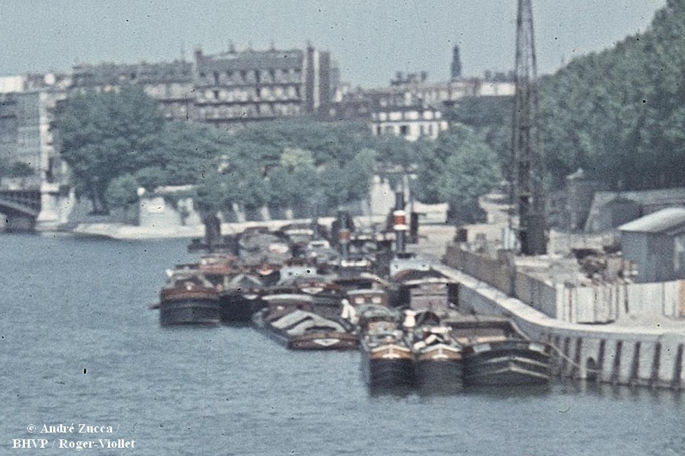 Sur le site bibliotheques-specialisees.paris.fr, on trouve deux diapositives couleur 24 x 36 mm d'André Zucca (1897-1973), photographe, datant de la période fin 1941-août 1944, conservée à la Bibliothèque historique de la Ville de Paris, avec quatre bateaux amarrés au quai de la Rapée, juste avant l'entrée du canal Saint-Martin :