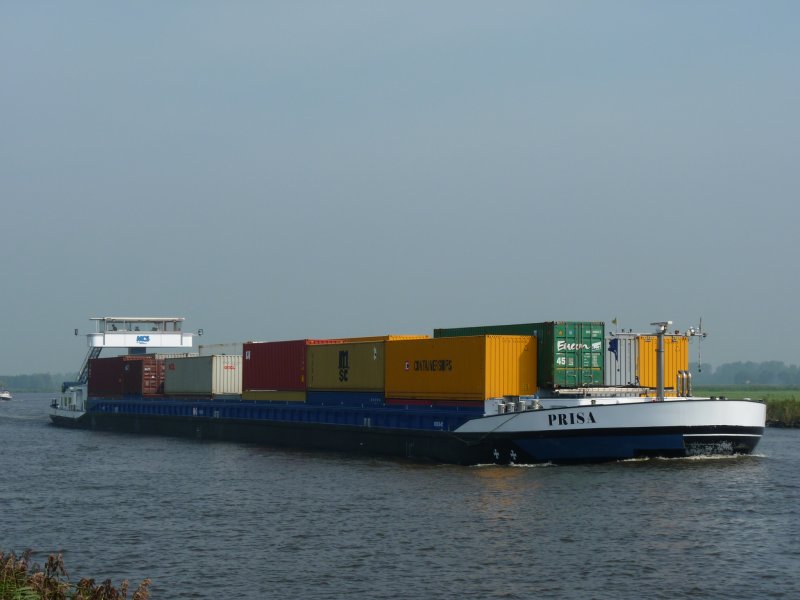 Prisa , 109,98 x 11,47 x 3,39 , 2912 ton , Bouwjaar 2005 , Werf Brodogradiliste in Apatin ( Serbia ) en Damen in Bergum ( Nederland ), 1795 pk MTU en 2 x 530 pk DAF – Ballegooy kopschroef , ex Eurotrans , eigenaar Vof. Duplo Shipping in Schipluiden , ENI 02212395