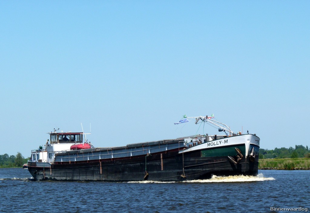 Molly-M , 54,93 x 6,20 x 2,63 , 606 ton , Bouwjaar 1964 , Werf Bodewes NV in Franeker ( Nederland ) , 400 pk DAF en 97 pk DAF boegschroef , ex Egberdina II , ex Stofina , ex Hoop , ex Breediep , ex Noordster , eigenaar P.L. Notenboom in Goudswaard , ENI 02325406