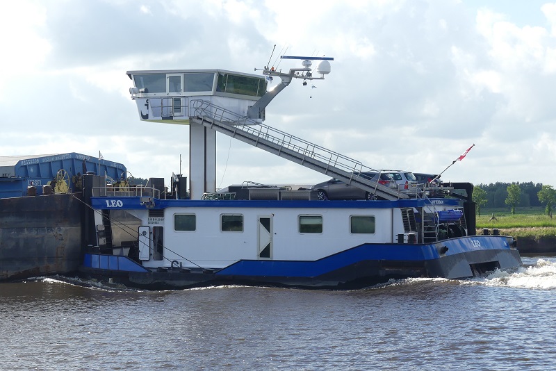 Leo , 19,00 x 11,20 x 2,20 , Bouwjaar 2000 , Werf Santierul Naval Orsova SA in Orsova ( Roemenië ) en Hoogendijk in Sliedrecht ( Nederland ) , 2 x 1014 pk Caterpillar , ex Riad , ex Ruben , ex Cunado II , eigenaar Rederij de Jong BV in Rotterdam , ENI 02324502