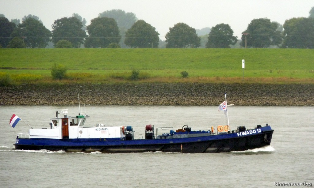 Fiwado 12 , 25,51 x 5,56 x 2,01 , 130 ton , Bouwjaar 1952 , Werf Scheel & Jöhnk werft in Hamburg ( Duitsland ) , 164 pk Caterpillar, ex Shell 19 , ex Walco , eigenaar Fiwado BV in Zwijndrecht , ENI 02007693