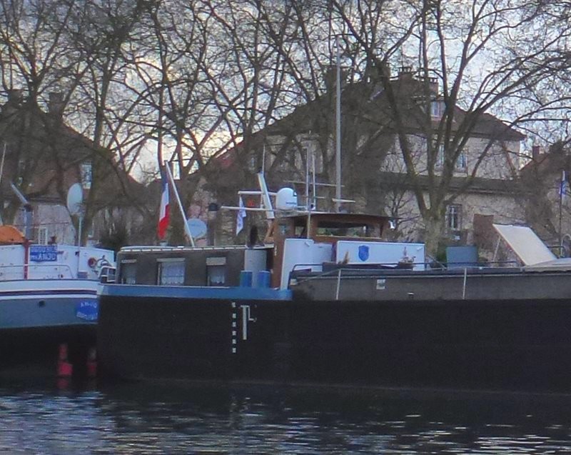De passage de bon matin à Crévic, montant sur le canal de la Marne au Rhin versant Meurthe, il se dirige vers Strasbourg où il restera en bateau-logement :