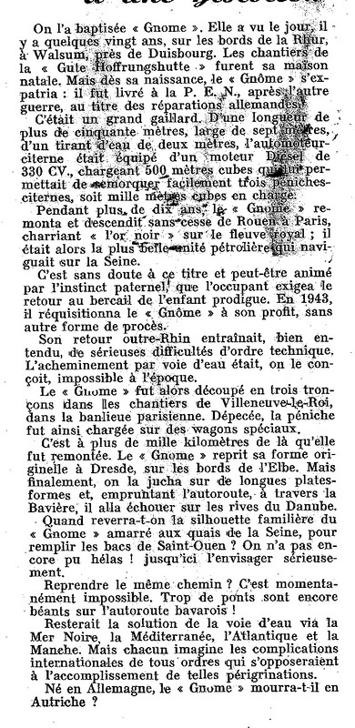 GNÔME, à son retour en Seine ; on y apprend notamment que des 38m ont aussi été envoyés sur le Danube et qu'un autre pétrolier de Seine, le
