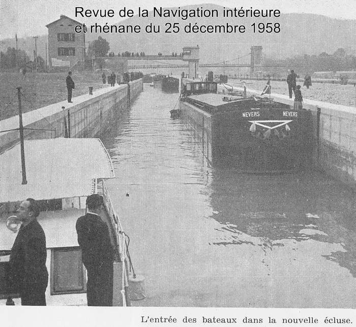 NEVERS sur une photo de la Revue de la navigation intérieure et rhénane du 25 décembre 1958, il faisait partie de la bassinée inaugurale de la nouvelle écluse de Couzon, sur la Saône, le 27 octobre 1958 :