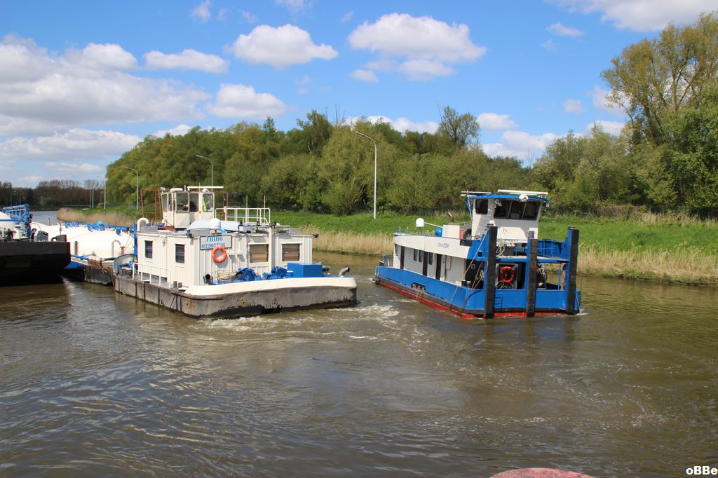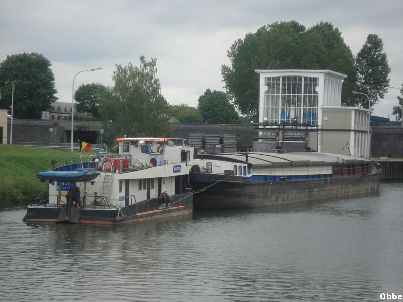 Devant l'écluse de Péronnes poussant le Kappa.