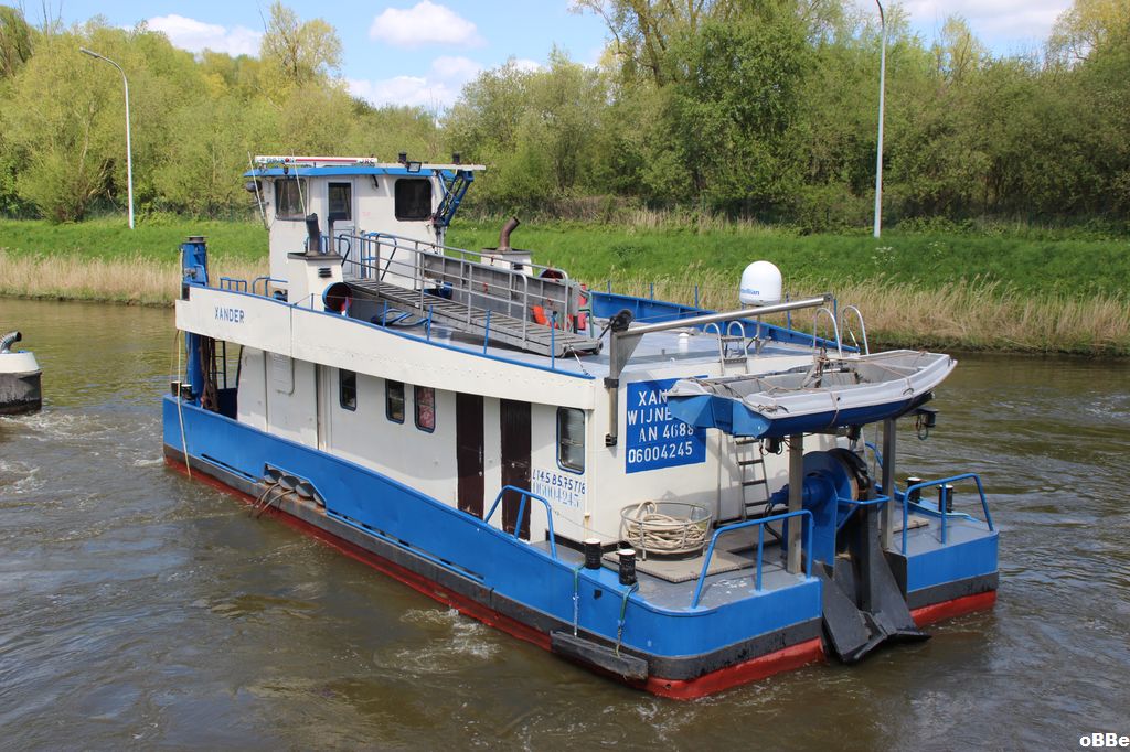 Xander , 14,65 x 5,75 x 2,24 , 18 ton , Bouwjaar 1969 , Werf Franco Belge in Villeneuve la Garenne ( Frankrijk ) , 2 x 430 pk Cummins , ex Dunkerqois , ex Swind , eigenaar Gitra BvbA in Wijnegem , ENI 06004245