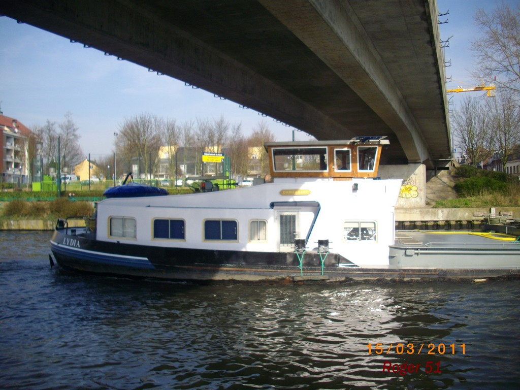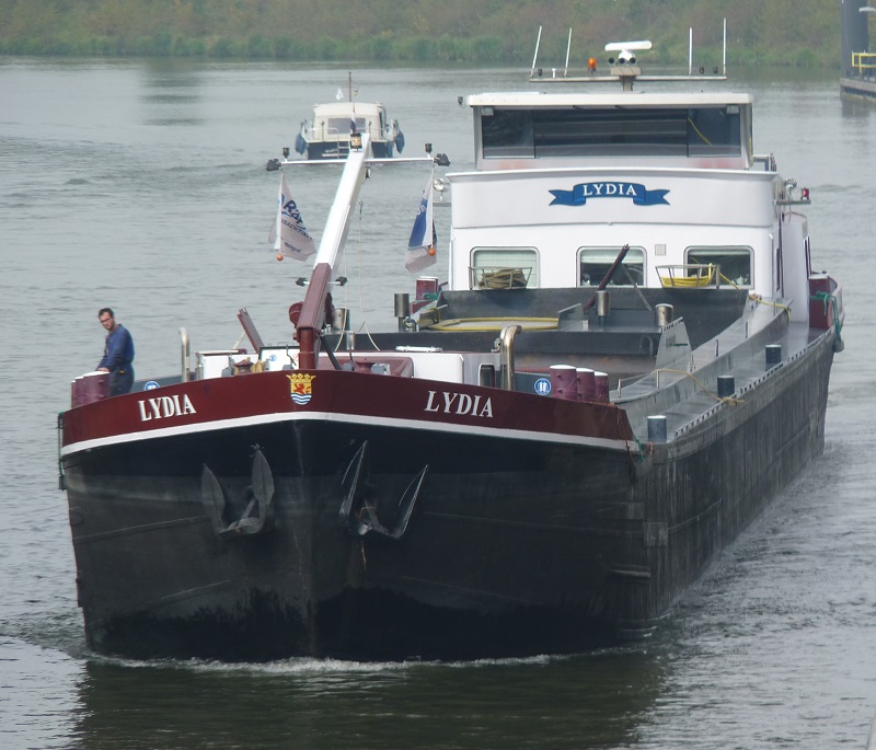 Lydia , 69,99 x 7,24 x 2,57 , 835 ton , Bouwjaar 1959 , Werf Scheldewerf in Rupelmonde ( Belgie ) , 450 pk Caterpillar en 219 pk DAF boegschroef , ex Adio , ex Olivia , ex Carin , ex Riant , eigenaar D. Kriekaart in Goes, ENI 02313057