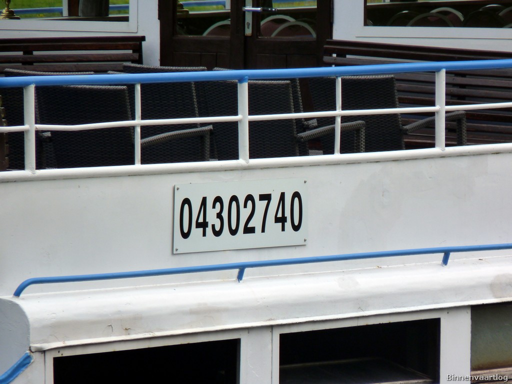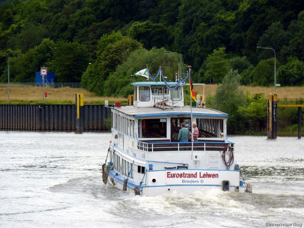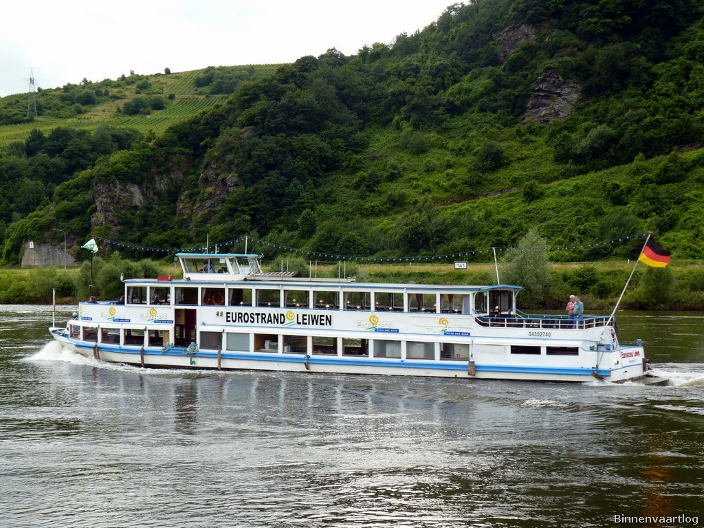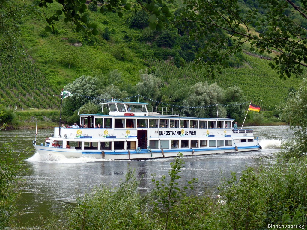 Eurostrand , 32,52 x 5,76 x 1,30 , Bouwjaar 1956 , Werf Schmidt in Oberkassel ( Duitsland ) , 425 pk Deutz , ex Wilhelmine , ex Luxemburg , eigenaar Personenschifffahrt Gebr. Kolb oHG in Briedern , ENI 04302740