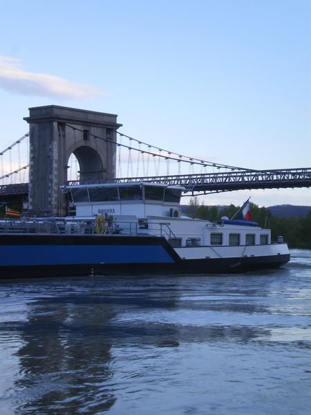 Je ne pense pas que cette photo soit de ce jour ( 27/8),j'ai éclusé ce bateau ce matin montant à Vaugris, et les débits sont bas (voir tres bas)