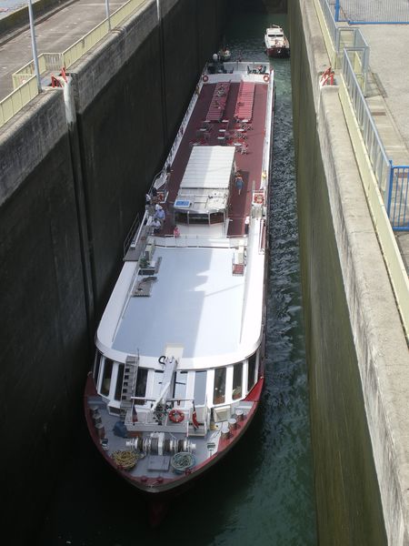 Ils ne sont pas encore très nombreux à remonter la Moselle presque jusqu'en haut, mais il était évident qu'une ville si accueillante, magnifique, amie de la culture et des arts et chargée d'histoire que Nancy, ne pouvait rester bien longtemps hors des circuits des grands bateaux à passagers ; c'est ainsi que l'EXCELLENCE PEARL était hier avalant à Custines, après une escale au port de Frouard :