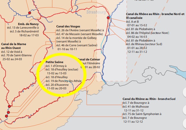 Alors par les Vosges ça aurait été trop facile ,mais en raison du manque d'eau il a fallu faire cap au nord puis Abbecourt ,Châlons sur Marne , Vitry le François et sortie à Heuilley comme sur les photos.