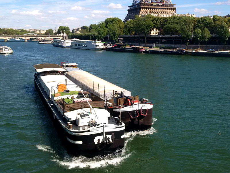 c'est un bateau-entrepôt qui se déplace sur la Seine avec sa flotte de triporteurs électriques. Un service "éco-responsable" tout à fait novateur et réservé aux professionnels.