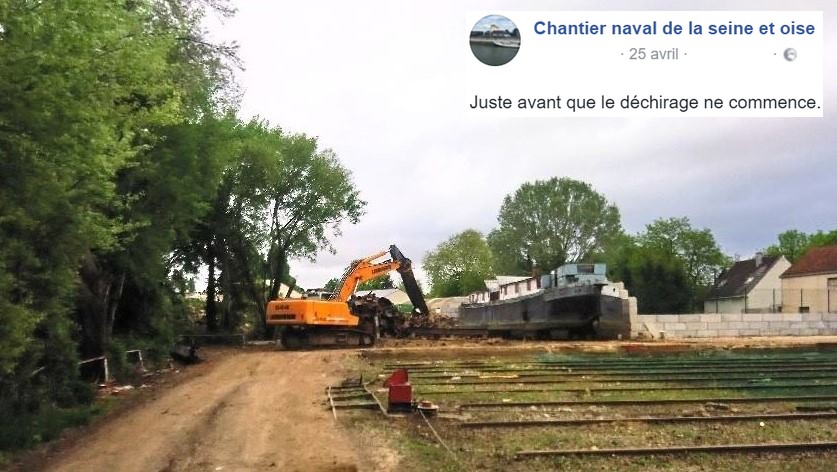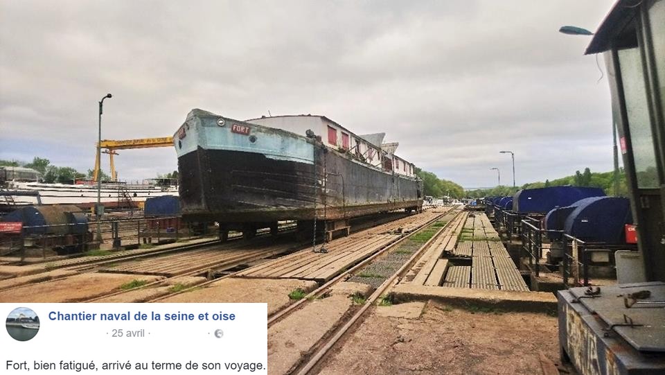 FORT tiré à terre, arrivé à Achères le 25 avril 2018, en précisant qu'il était amarré à Conflans-Sainte-Honorine depuis 1976 :