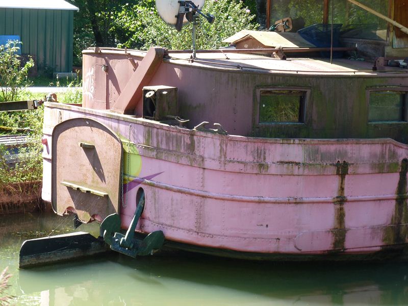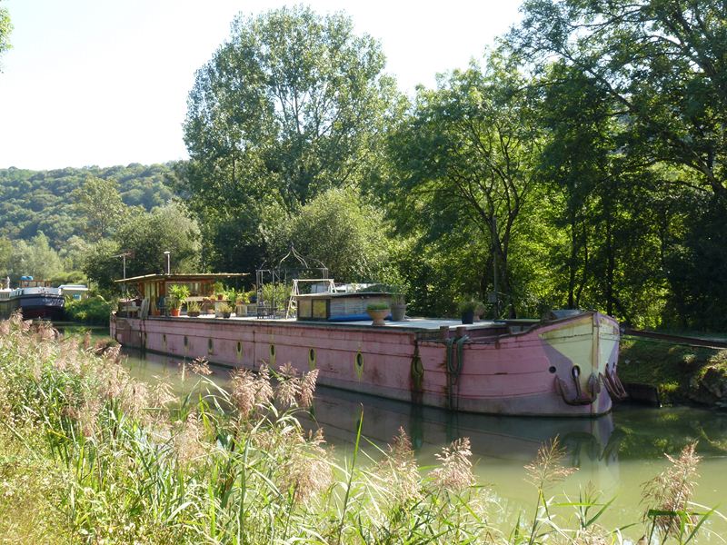 Voilà t-y pas que l'autre fois, en me promenant sur les bords du Doubs, à mont de l'écluse double n°54-55 de Rancenay (25), je tombe sur ce bateau-là :