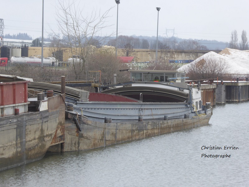 Ici le convoi passe dans l'ancienne écluse de la Cave, c'est plus compliqué en raison des bajoyers inclinés .