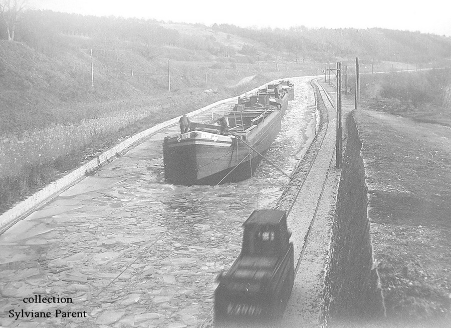 En 1949, la soudière Marcheville-Daguin fusionne avec la soudière Saint-Gobain de Varangéville pour former la société "Les Soudières Réunies de La Madeleine - Varangéville". Les flottes "MD" et "St GOBAIN" deviennent "SR", le MD7 devient SR7 ; le voici à nouveau dans les glaces (oui, ces bateaux naviguaient exclusivement en Lorraine !), à vide, à Liverdun, en 1963 :
