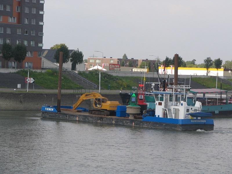 Tiemen , 35,05 x 6,60 x 1,65 , 194 ton , Bouwjaar 1998 , Werf Silverta b.v in Heeg ( Nederland ) , 2 x 170 pk DAF en 25 pk Electro Hydroliek boegschroef , eigenaar Tebezo Waterbouw Vof in Genemuiden , ENI 02208314