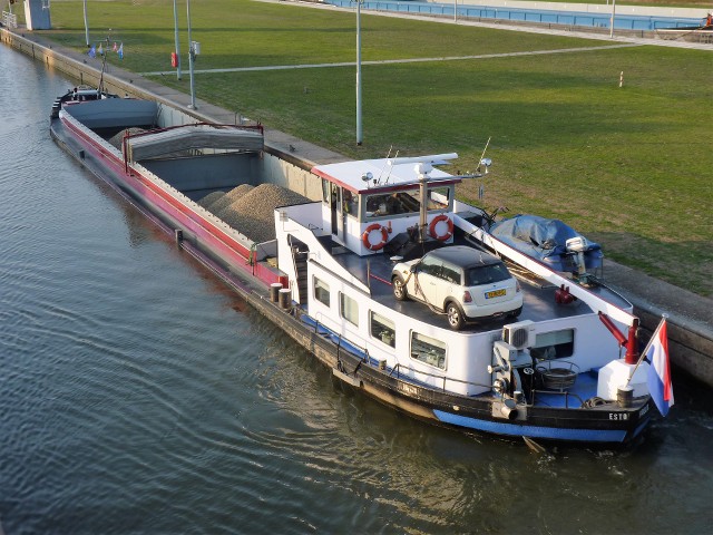 Esto Fidelis , 55,03 x 7,25 x 2,64 , 610 ton , Bouwjaar 1947 , Werf Jos Boel & Zn in Temse ( Belgie ) , 450 pk Caterpillar en 210 pk Scania boegschroef , ex Navexmotor 9 , ex Johann Heinrich , ex Esperance , ex Remplacant , ex Bonafide , ex Coralien , eigenaar Vof Esto Fidelis in Leerdam , ENI 02311328