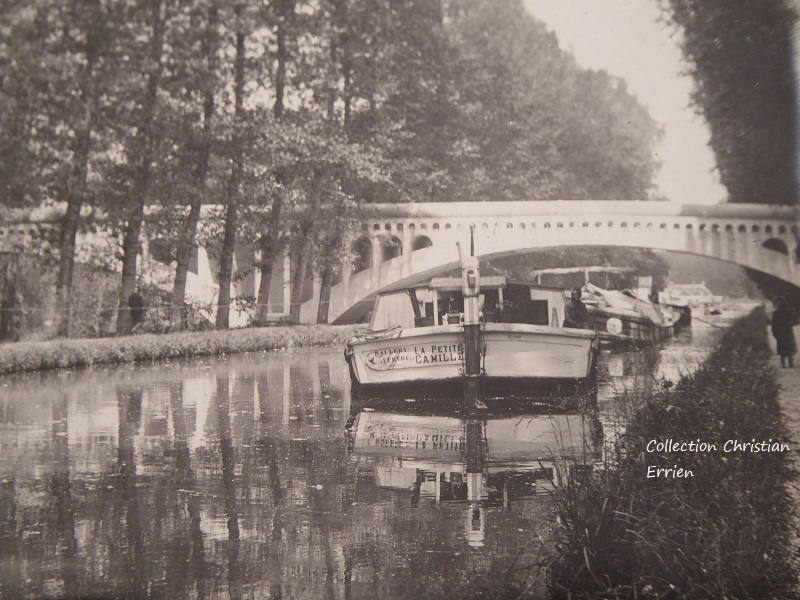 Sur cette photo originale on reconnait facile l'aqueduc de la Vanne à Moret sur Loing. La plus belle surprise est le bateau LA PETITE CAMILLE appartenant à un certain Ballery....