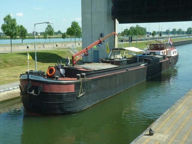 Wanderer , 38,96 x 5,09 x 0,96 , 41 ton , Bouwjaar 1931 , Werf Chantier Naval in Saint-Denijs-Westrem ( Belgie ) , 150 pk ABC , ex Lisieuse , ex Brabant , ex Res Nova , ex Cornelia , ex Pro et Contra , ex Tresor , ex Tannie , eigenaar T.J Hoenselaar in Heijen , ENI 02008641