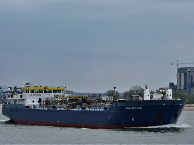 Twister , 99,95 x 14,00 x 3,40 , 2261 ton , Bouwjaar 2010 , Werf Groningen Shipyard in Waterhuizen ( Nederland ) , 2 x 1370 pk Mitsubishi en 550 pk Schottel boegschroef , eigenaar Chemgas Intercoastal Shipping BV in Rotterdam , ENI 02722666