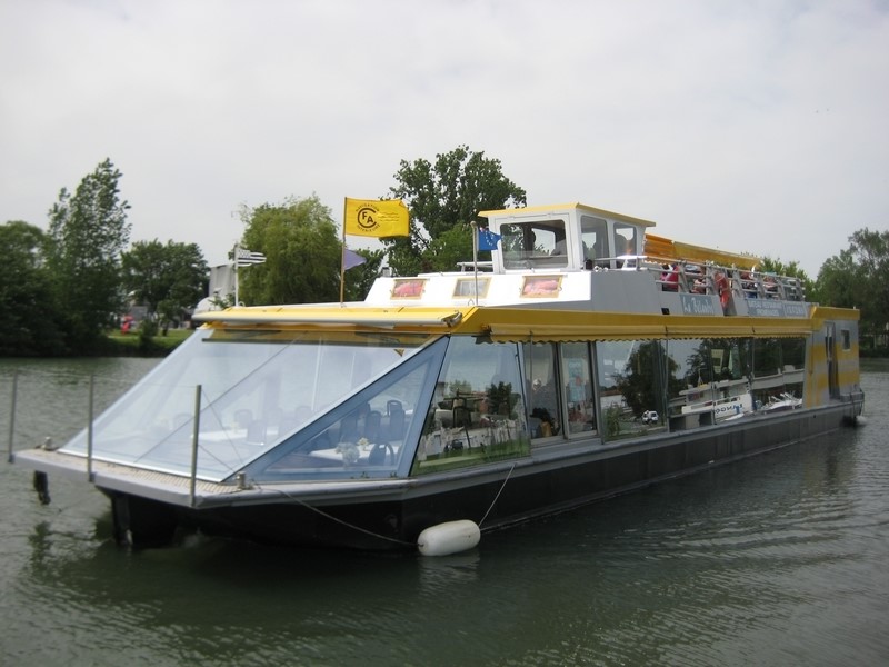 https://www.amis-du-cher.fr/saga-de-la-belandre/Dim ; 23 m X 5 m Moteur 2 X 80 CV + propulseur d'étrave