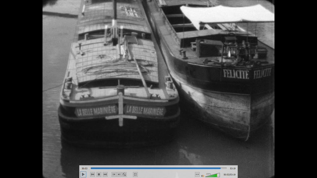 voici une capture d'écran d'un remorqueur dans Paris.extrait du film LA BELLE MARINIERE de 1932