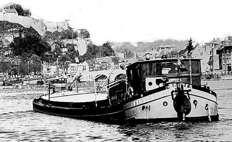 Meuse namuroise" et qu'il nous autorise à reprendre ici : c'est à Namur, avec un 38m chargé avalant qui arrive à l'écluse de la Plante, en 1980