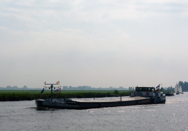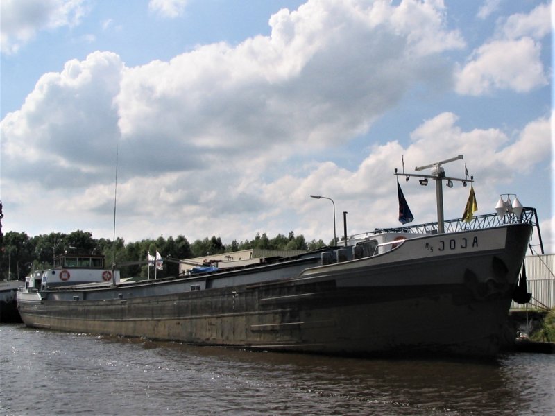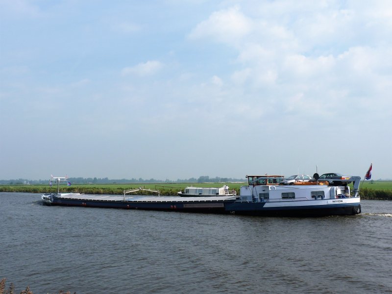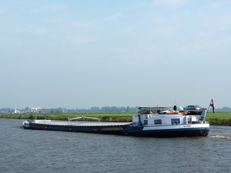 Myos , 55,00 x 7,21 x 2,62 , 683 ton , Bouwjaar 1961 , Werf Burcht in Burcht ( Belgie ) , 2 x 240 pk Detroit en 219 pk DAF boegschroef , ex Henger , ex Erika , ex Jo Ja , ex Mira Quest , eigenaar A.G.W. Duizendstra in Capelle a/d IJssel , ENI 02313682