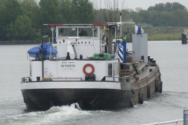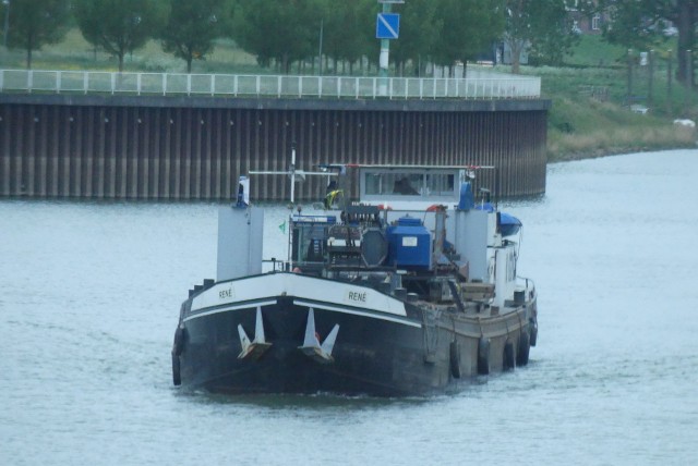 René , 53,50 x 7,34 x 2,77 , 587 ton , Bouwjaar 1949 , Werf De Haan & Oerlemans in Heusden ( Nederland ) , 273 pk Scania en 212 pk Boegschroef DAF , ex Dordrecht 9 , ex Romania , ex 2 x Beveland , ex Robert , eigenaar C. Kornet in Sliedrecht , ENI 02102518