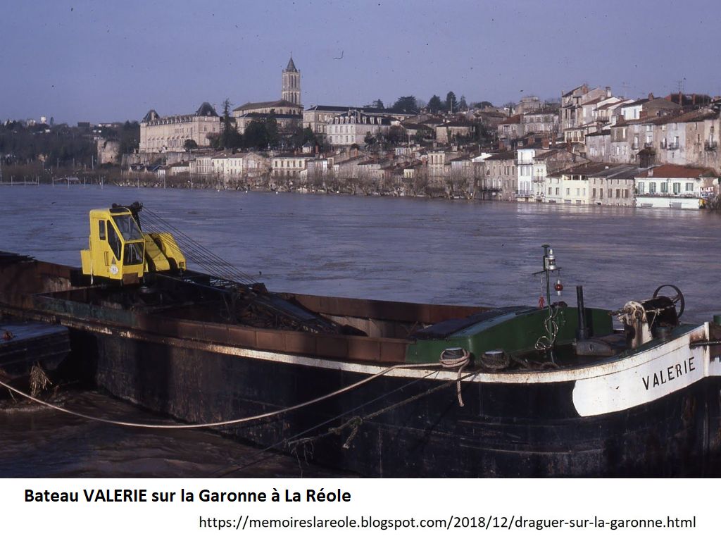 Sur deux photos visibles sur internet -l’adresse est notée- on peut voir un bateau VALERIE sur la Garonne à La Réole.