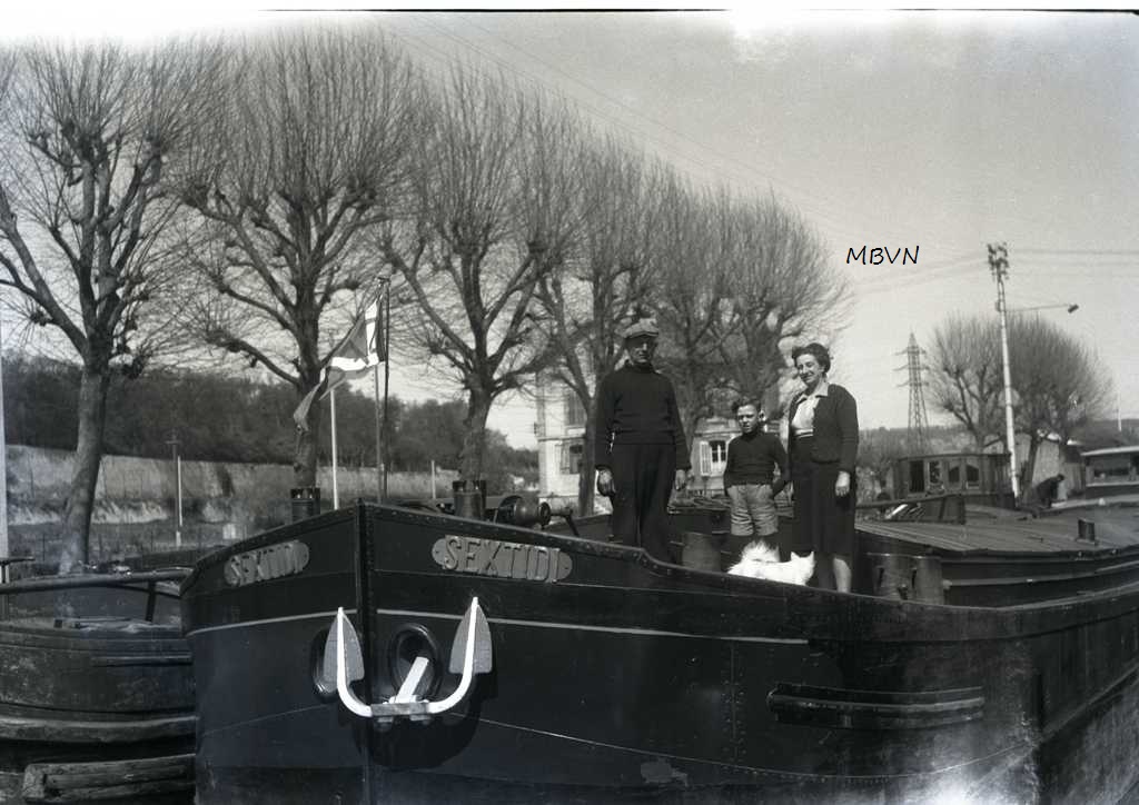 "les grands parents de mon mari réceptionnent en 1936 le SEXTIDI au chantier PLAQUET Peronne ; la photo date de 1951"