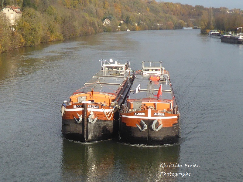 Alors puisque je suis dans le sujet en voici une autre prise du pont de St Mammès en novembre 2019 ELODIE et ALEXIS bord à bord pour mieux voir les deux bateaux du convoi. Bon les peintures sont en meilleur état qu'aujourd'hui mais pour ça Lionel est amarré à Champagne et va refaire de belles peintures toutes neuves. Il y a même de la main d'oeuvre "gratuite" qui passe tous les jours devant le bateau mais ces gens là qui viennent de pays lointains ne travaillent pas, ils vivent à nos frais......