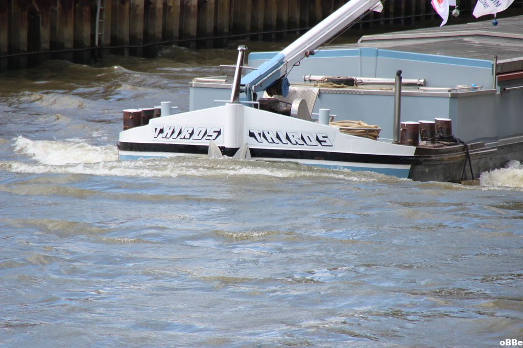 Gros trafic actuellement sur le canal de la Sambre à l'Oise ou le THIROS et neuf autres bateaux sont affectés au dragage en vue de la réouverture du canal.