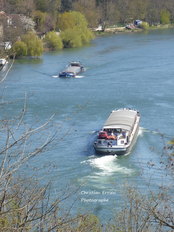 voici une autre vue prise depuis les hauteurs de La Celle. Le BARACKOUDA va croiser le DEL-JES. Au fond on voit un petit remorqueur à terre situé juste derrière chez Robert et Josiane ...;