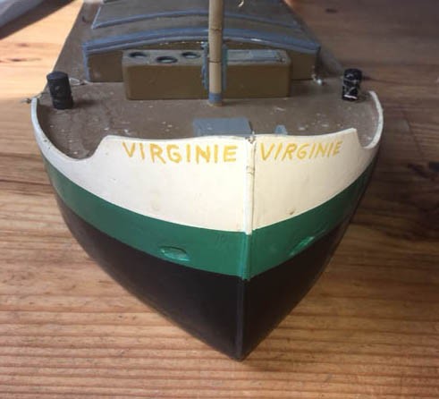 Vos propositions sont intéressantes. La Louisette se rapproche de la réalité. Sur la maquette au-dessus de la cabine de pilotage, il y a un panneau (enlevé pour le transport) où l’on devait pouvoir mettre le nom du bateau et son immatriculation. Était-ce quelque chose de courant ?