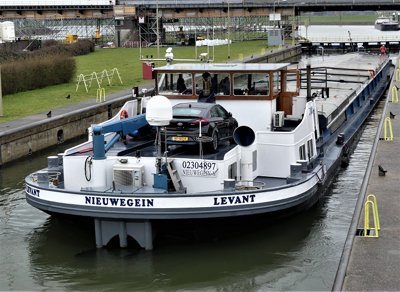 Levant , 77,00 x 9,20 x 2,60 , 1241 ton , Bouwjaar 1930 , Werf De Haan & Oerlemans in Heusden ( Nederland ) , 863 pk Mitsubishi en 260 pk DAF boegschroef , ex Betsy , ex Vagant , eigenaar Vof. Levant (De Pree) in Nieuwegein , ENI 02304897