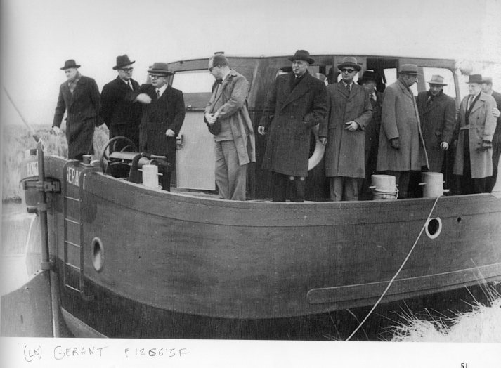 Voici un complément photo de la construction de ce bateau jusqu'à son inauguration ; sur le chantier en février 1950 et inauguration le 22 mars 1950.