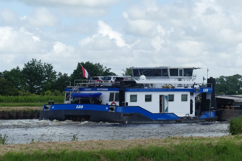 Leo , 19,00 x 11,20 x 2,20 , Bouwjaar 2000 , Werf Santierul Naval Orsova SA in Orsova ( Roemenië ) en Hoogendijk in Sliedrecht ( Nederland ) , 2 x 1014 pk Caterpillar , ex Riad , ex Ruben , ex Cunado II , eigenaar Rederij de Jong BV in Rotterdam , ENI 02324502