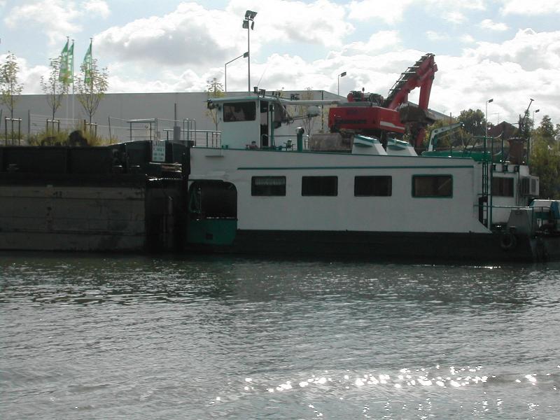 Arrière d'un Bateau pétrolier à SOGESTRAN coupé et transformé en Pousseur