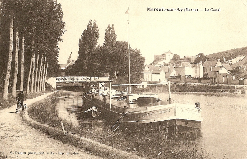 Sur celui qui est du côté du photographe, on lit : LES FILS DE A. DEUTSCH - ROUEN - PARIS - PANTIN, et sur l'autre, LES FILS DE A. DEUTSCH - ROUEN - PANTIN - JUV... (la fin est cachée par le premier bateau, mais je pense à Juvisy ?)